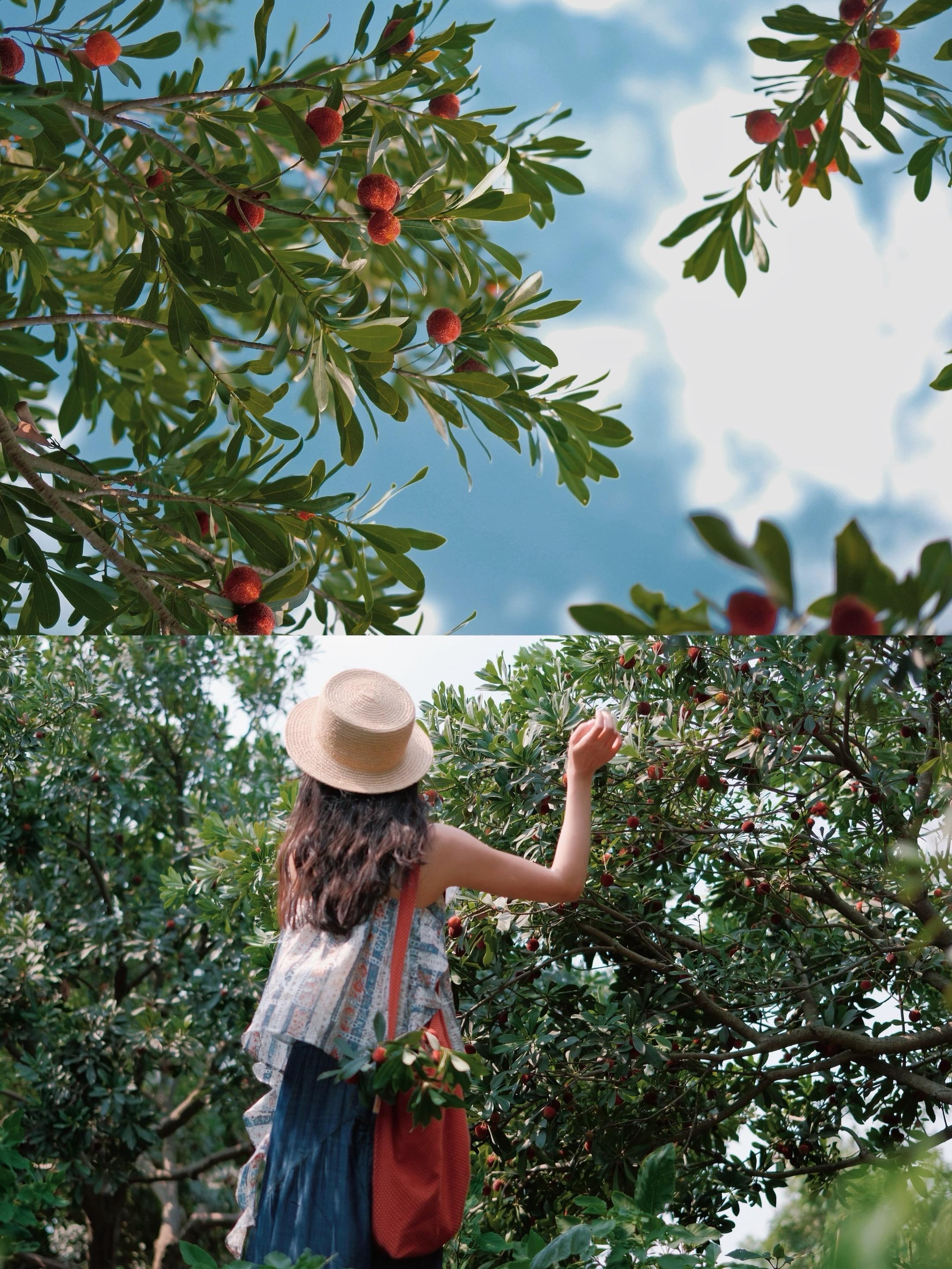 是盛夏的果实呀!❤️森系胶片电影感拍照。上次拍摘杨梅还是21年 这次终于又拥有了采摘的快乐啦~ 杨梅的季节 盛夏的果实❤️🌿 用镜头记录吧~ / 采摘季拍出夏日文艺胶片感吧~