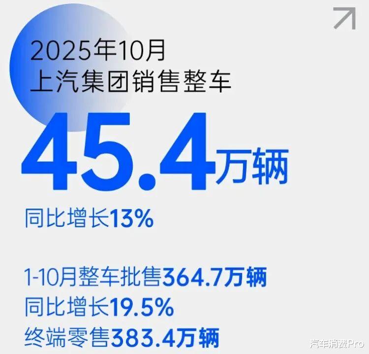 ◆ 上汽集团10月销量:45.4万辆