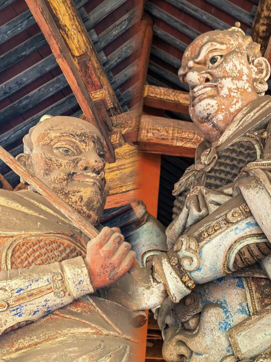 金代,大定八年创建的献殿,是古代祭祀时陈列供品的场所,它没有墙壁,全部由木头榫卯组合而成,风格独特,体现了古人的智慧。