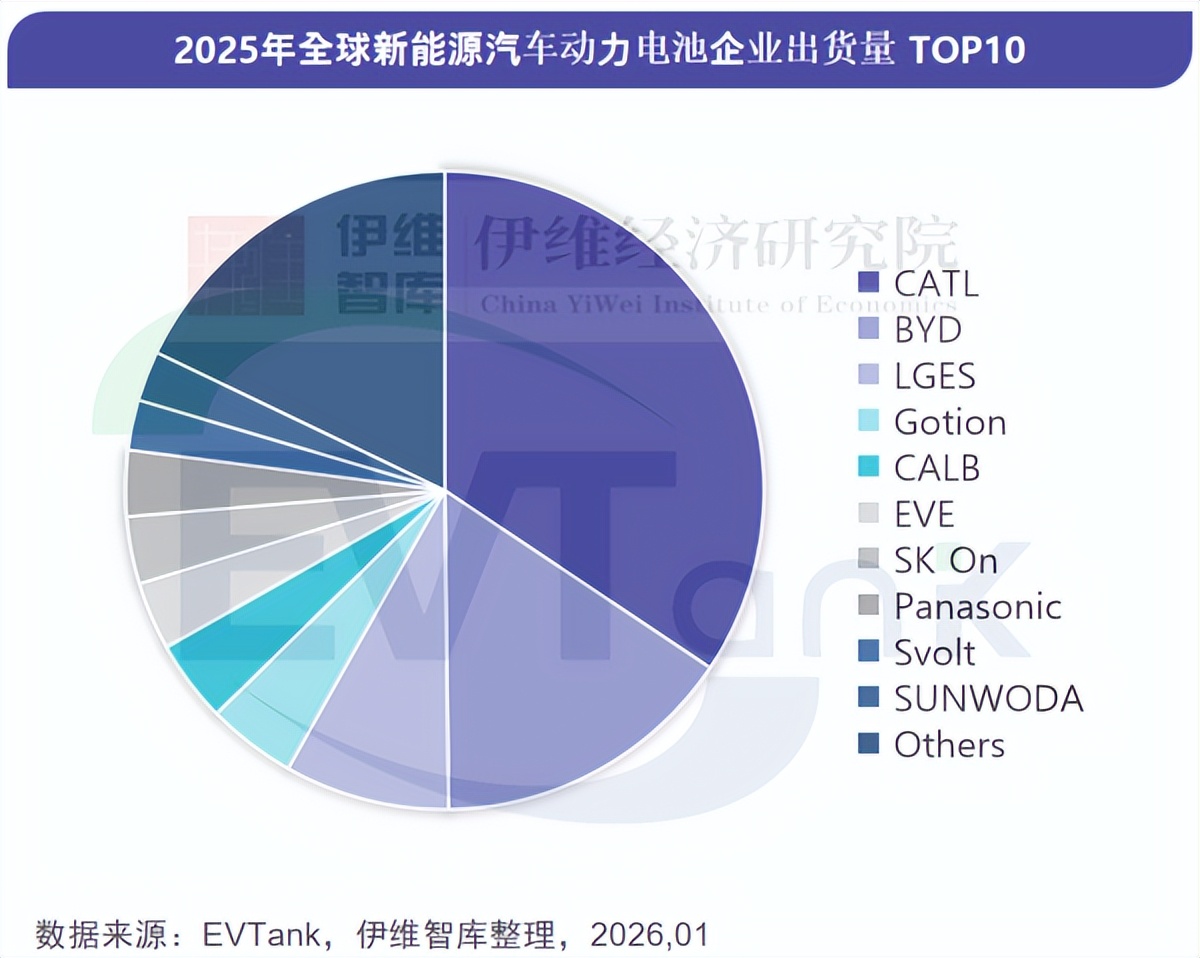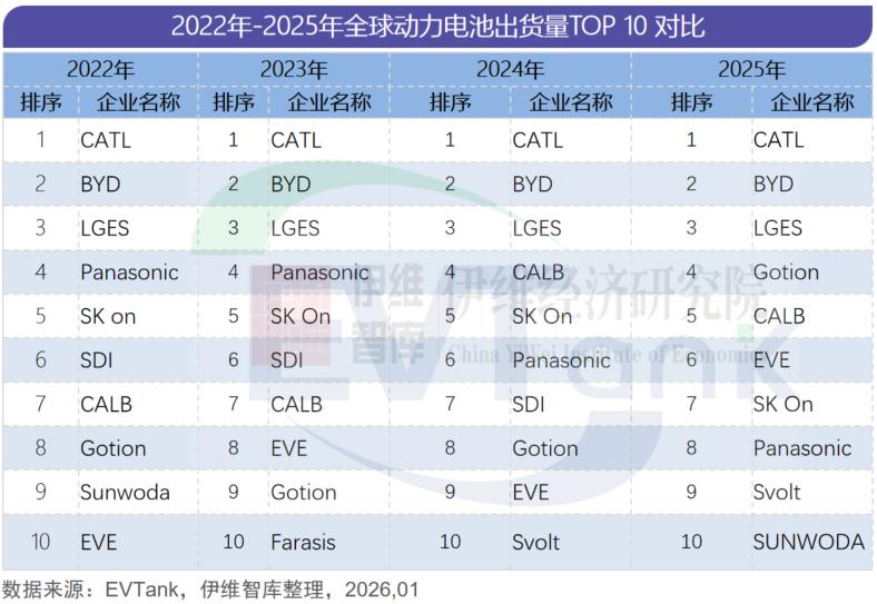 2025年,国轩高科由去年的全球第八名上升至全球第四名,亿纬锂能由去年全球第九名上升至全球第六名,欣旺达取代韩国三星SDI进入全球前十,全球动力电池出货量前十企业中中国企业数量增加至七家。