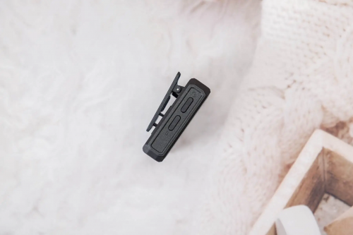 7克重量长时间佩戴无负担,隐形背夹设计隐蔽性极佳,但拆卸时需借助工具,操作不便。接收器边缘圆润,握持舒适,但磁吸连接强度有限,剧烈动作时可能意外分离,影响录制稳定性。