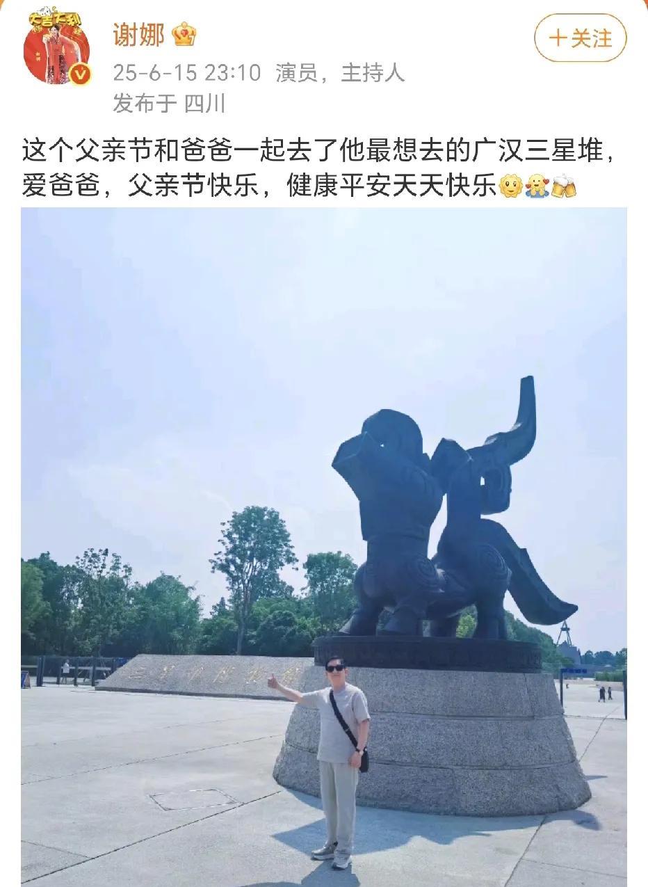 谢娜和爸爸去了三星堆! 广汉三星堆也是小编最想去的,每次看到三星堆的讲解都让人充满好奇,有太多的神秘。 父亲节大家都为自己的父亲送上祝福了吗?