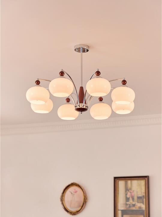 我选的是五头的柿子灯~真的太喜欢啦!!白玉玻璃灯罩质感满满搭配胡桃色和金属细节,复古又高级✨