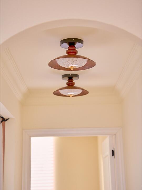 真的越看越喜欢~胡桃色灯体太有中古那味儿了灯罩是那种冰冰闪闪的亚克力质感,不开灯都自带高级感✨