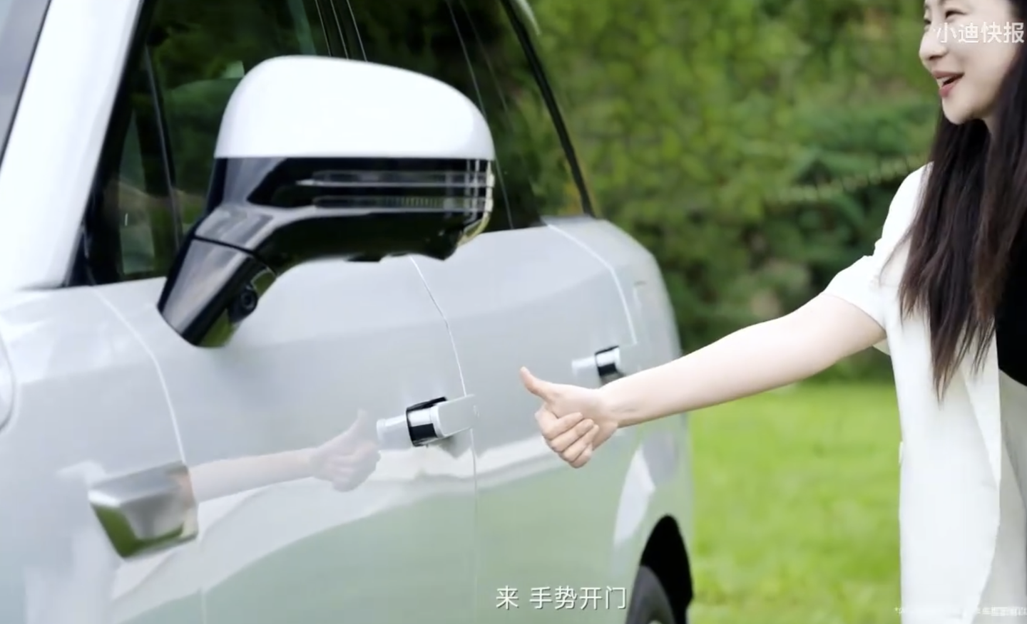 比如有些事关优雅的智能配置,我不知道该怎么归类。就是像AR开启尾门,空气悬挂带来的迎宾模式,以及手势开车门这些功能;