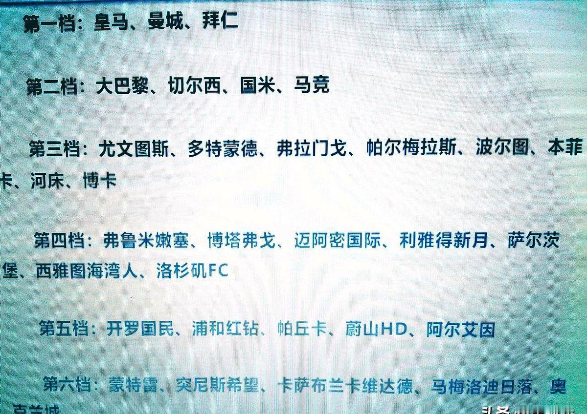 世俱杯球队实力分档 最新的夺冠赔率榜上,皇马、曼城、大巴黎这些豪门稳稳占据前八。 要说赔率这东西还真有意思,皇马这几年欧冠表现稳如老狗,曼城有瓜帅坐镇,拜仁德甲霸主地位雷打不动,切尔西虽然英超磕磕绊绊但杯赛经验摆在那儿。 最让人意外的是多特蒙德居然能挤进前八,看来贝林厄姆转会后的年轻阵容反而踢得更生猛了。 这八支队伍个个都是硬骨头,碰上谁都得掉层皮,世俱杯这回是真要拼刺刀了!
