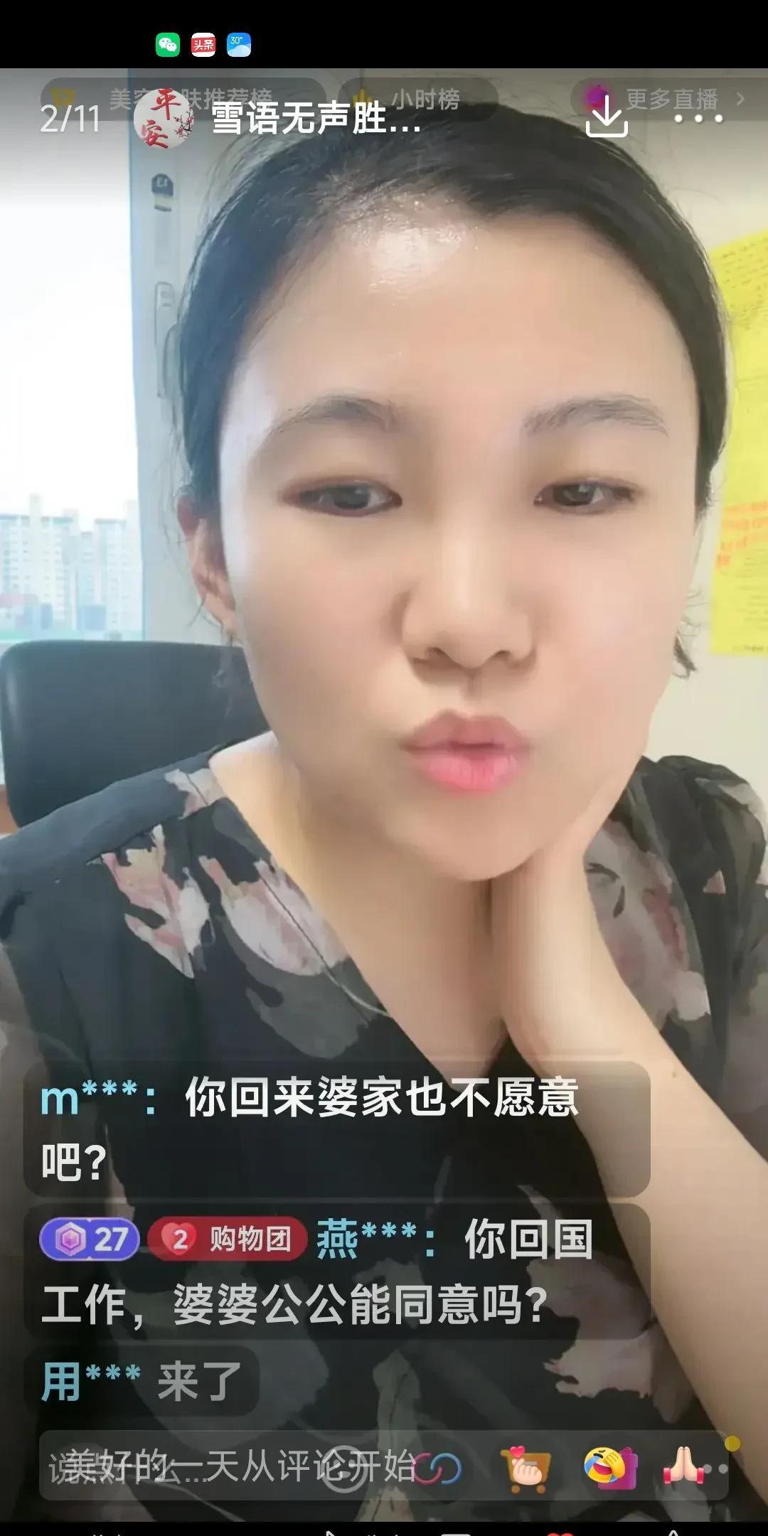 好久没露面的小雪昨天晚上直播只聊天,没卖货。情绪非常低落,让姐妹们给拿建议,想回国发展行不行?好不好? 真的不知道小雪发生了什么事,看得出很不开心的样子。 说为婆家付出太多了,来韩国10年了,现在不顾及别人了,只想要自己的生活, 只管生我养我的,我生我养的。 这话一说,也遭到了许多人的不满,但是也要考虑到老公。 女人既然结了婚,你选择了远嫁,就要以小家为主吧,如果真想回国发展,老公怎么办?公婆会愿意吗? 有人问是不是工作不顺利,小雪说很好啊,难得有这么好的一份稳定的工作,现在拍视频直播都不干了。 大家就琢磨不透小雪,严重质疑。这么嫌弃现在的生活,想回国照顾爸妈,是爸妈身体不好,年龄大了,但是家里还有个弟弟吗? 总而言之,感觉小雪昨天晚上的直播话中有话。令人费解。 真的想回国发展,那要遵从自己的想法吧,别人的意见能听得进去吗? 真的回国了,老公怎么办?孩子怎么办?那家不就散了吗? 想回国发展带上老公孩子,我想公婆是坚决不同意的吧,因为大哥未婚未育。 尽关小雪的动态吧,回国也挺好的,在父母身边和熟悉的环境。