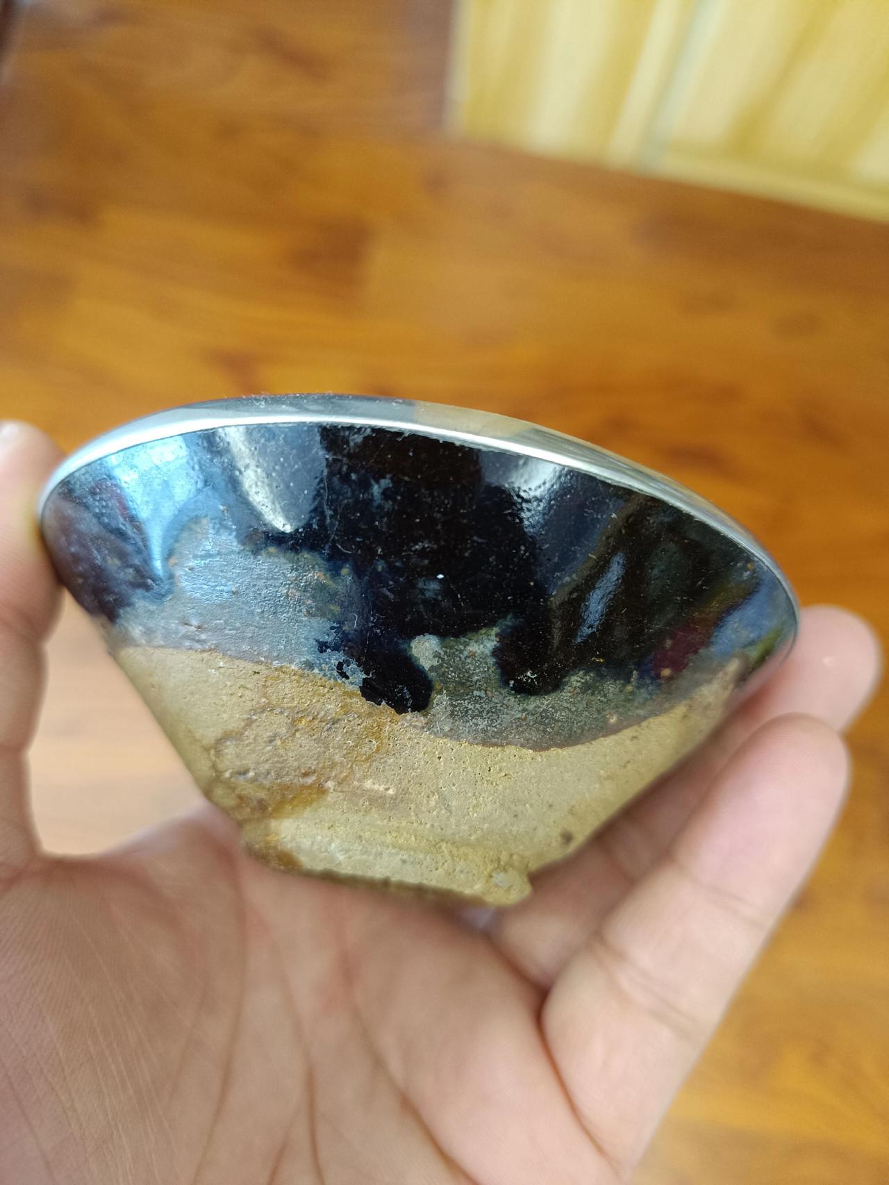 原价500.现降至360元包邮 福清窑老盏,磨口包银口,口径9.7高4厘米!单色乌金釉,光亮,乌黑,沉静,酷帅!