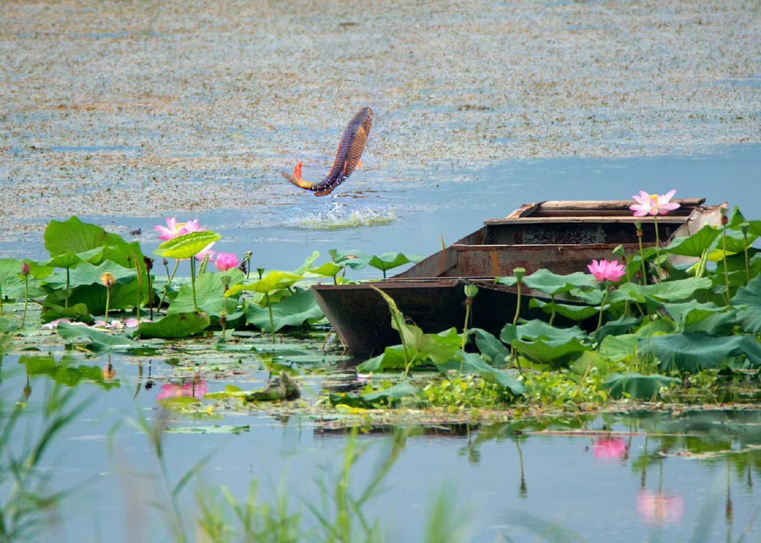 网友再次将镜头对准天津乡村蓟州夏日荷塘,荷花盛开如诗画。碧水映花影,清风送荷香,