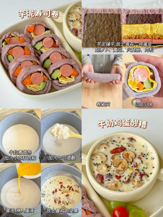 🍳芋泥寿司卷+牛奶鸡蛋醪糟