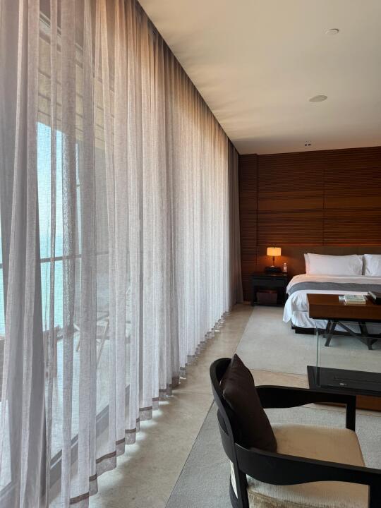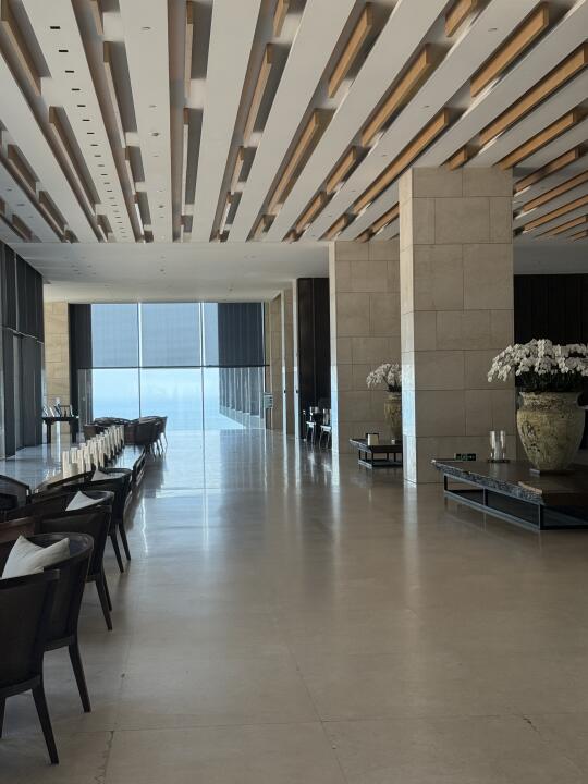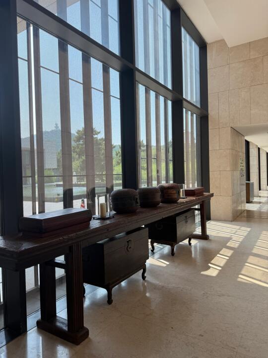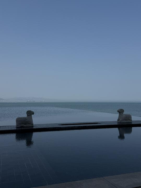 和闺蜜临时起意来青岛玩两天 选择了这家景色不错的酒店 酒店挺大的 很多设计都是木质材料 好喜欢闻这个味道 身心都放松的感觉 而且它就酒店还有好多古代文物展览好有艺术气息 就是有些搞不懂是做什么的哈哈哈跟闺蜜要笑疯了在这~ 酒店很多地方拍照也都蛮好看的 可以在这待好长时间的程度 看海 落日都很方便 下楼就是
