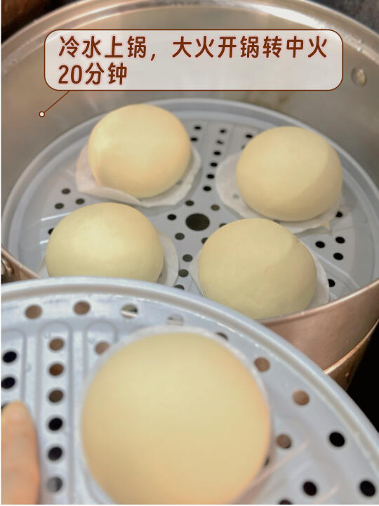 醒发至2倍大后直接冷水上锅