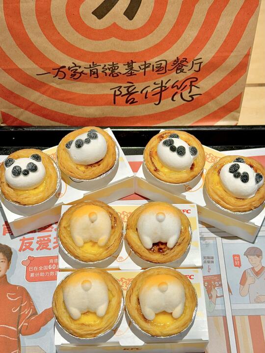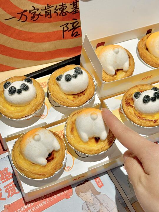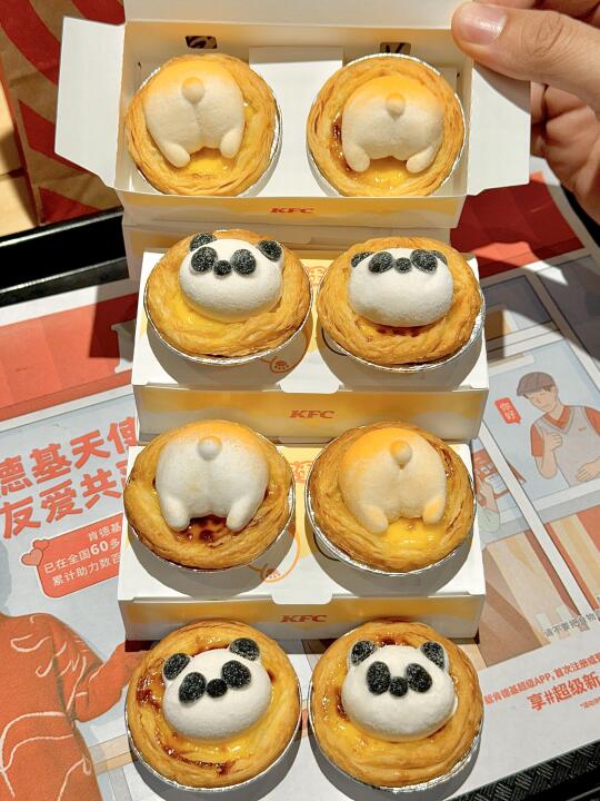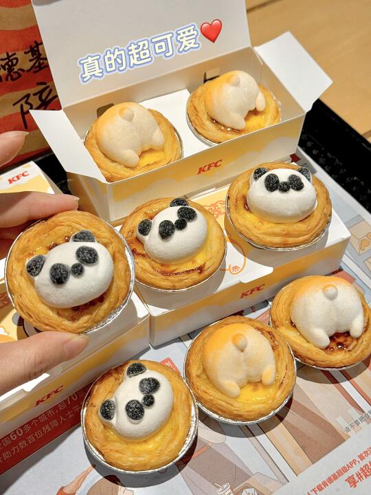路过KFC直接走不动道! 蛋挞上的棉花糖熊猫头和柯基 PP 软 fufu 的~ QQ弹弹的磨砂质感像在摸小奶猫😍 . 一口咬下去爆浆!蛋挞芯嫩到像在吸布丁 酥皮咔嚓响还带着黄油香~ 棉花糖乖乖趴在蛋挞上,萌萌的造型chao治愈 甜度刚好不腻人,口感超绵密! . 2只10元!第二份居然半价!4只只要15元!! 算下来一只居然才3块多!!!
