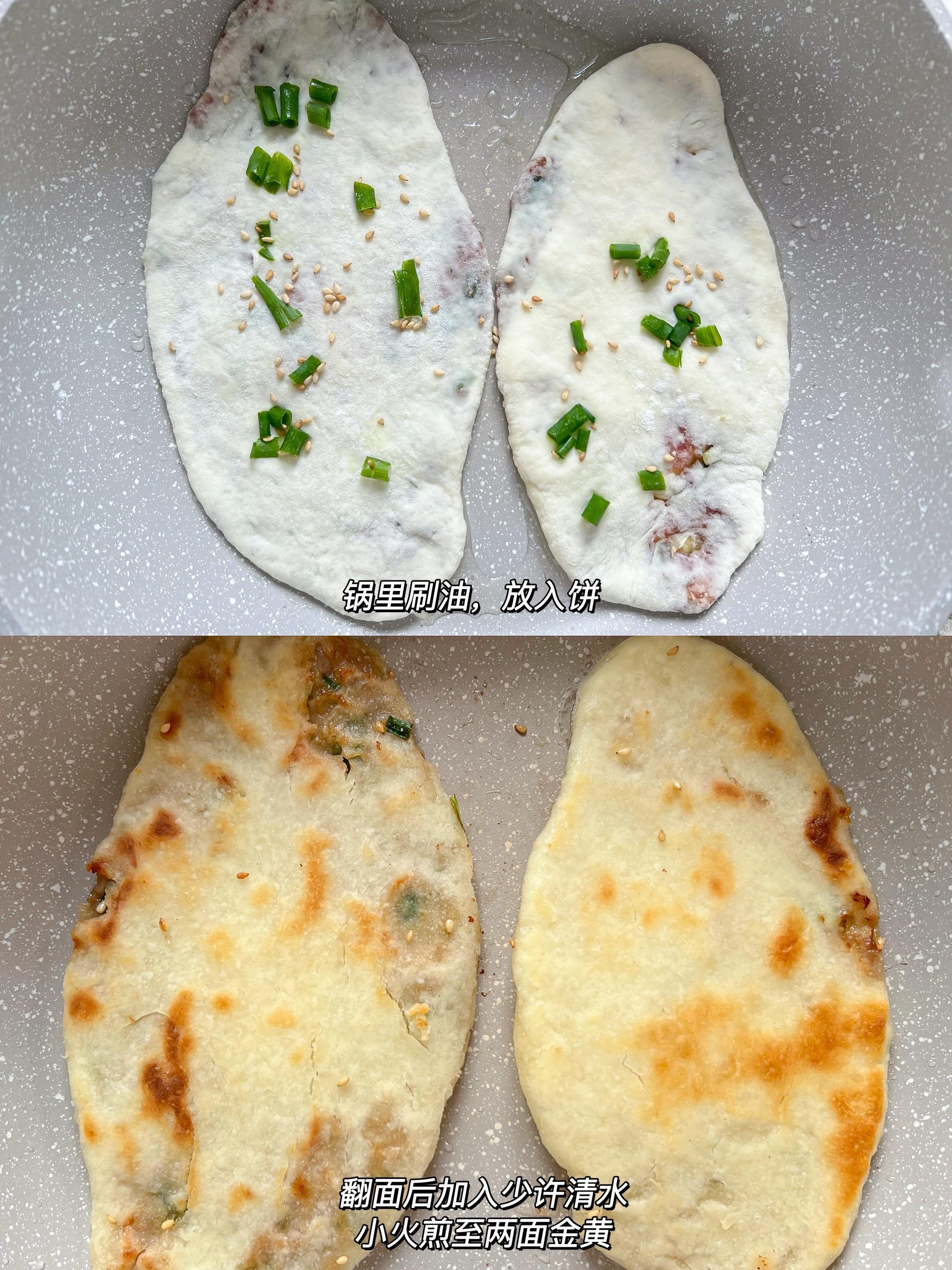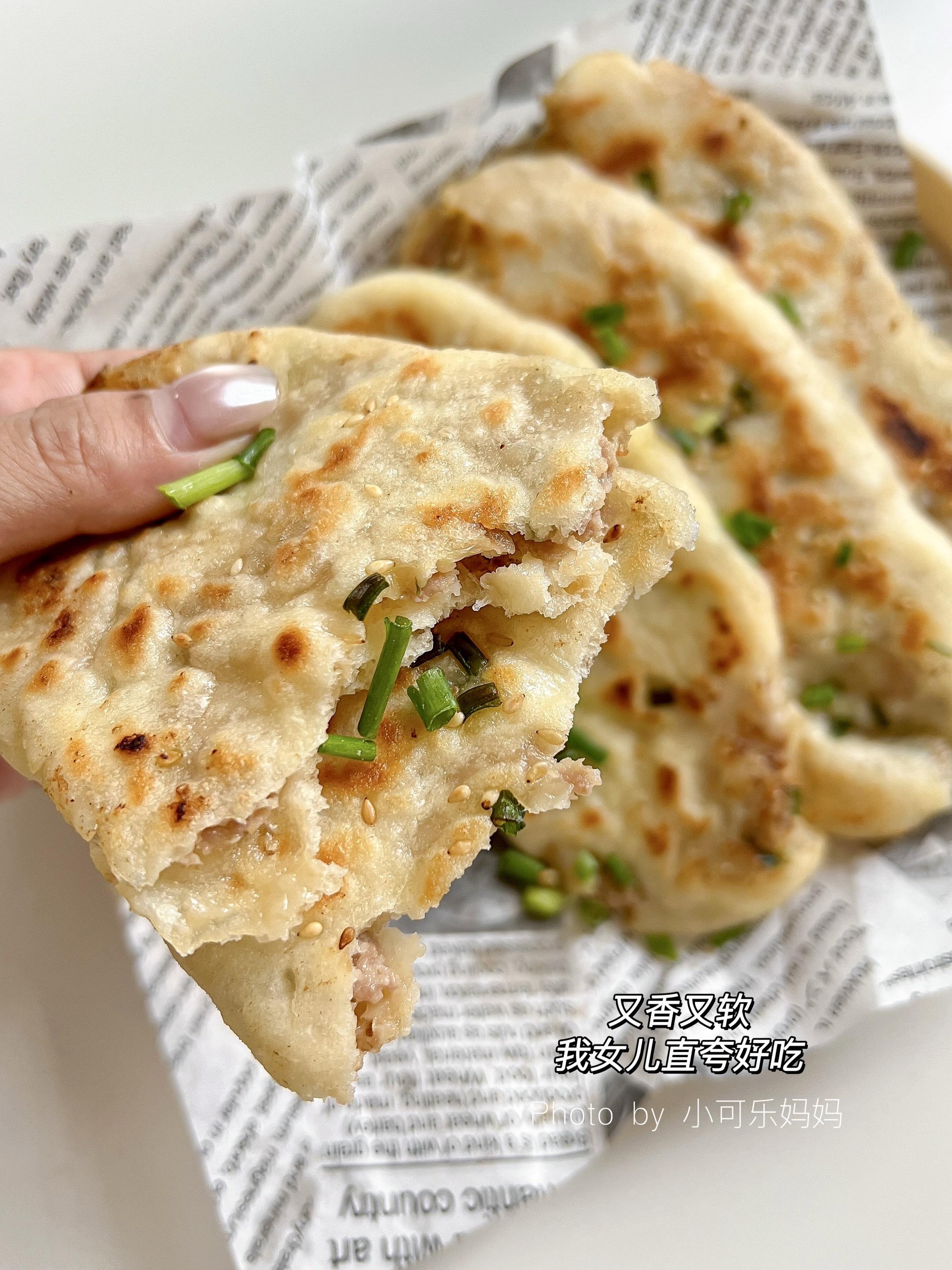 一定要试试这个葱香发面肉饼‼️无需揉面。最近早餐我家都是吃这个发面葱香肉饼,无需揉面,放凉了也超柔软,我女儿一口气吃了两个,连吃三天都不腻那种,做早餐,点心或者主食都很不错,快给宝宝试试吧 - 🥣食材 面粉200g 温水140g 酵母2g 玉米油10g 猪肉末 葱 🔎详细做法请看图文哦~ ✅全程小火慢煎,怕不熟在饼周围淋点水焖一会儿