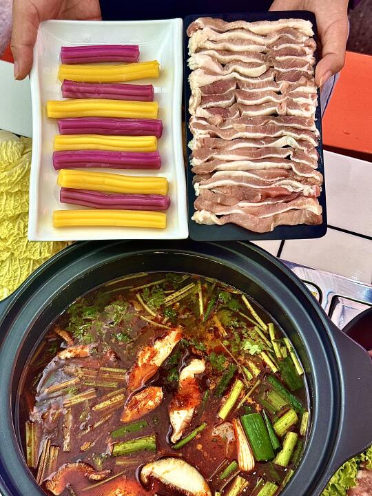 长春这两年开了好多夺夺粉,终于在大学城开了一家! 推荐: 夺夺粉:吃贵州酸汤火锅就为了这口夺夺粉,有豆香味,非常香! 肉末:必点的,搭配浓郁锅底和特色调料,好吃! 猪板筋:肉类里最喜欢的,肥瘦适中。 粉耗子:就是黄色粉色那盘,煮完qq弹弹,每次吃火锅必点~ 📍南巷酸汤夺夺粉火锅