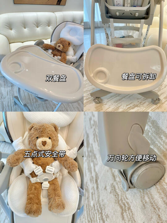 作为一个现代的新手妈妈 主打有一个特点:科学育儿 相信科技和时代进步带来的便利!! 从孕期和老公就做了好多功课 入手了一把多功能餐椅[萌萌哒R] 可坐!可躺!可趴! 小月龄当摇椅 等宝宝大了就当作餐椅 底部万向轮,走哪推哪 随时随地能看到宝宝 餐盘是双层且可拆卸的 小月龄时候可以收纳到车车后面 90后带娃主要一个不内耗~ 而且最近618京东有活动,领取京东券价格更划算