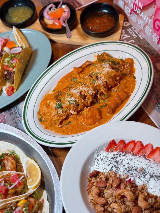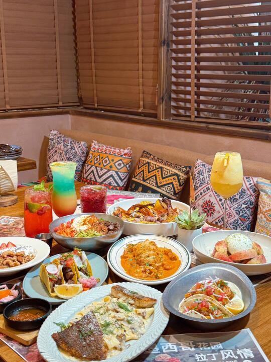 吃饭我推荐这家墨西哥Garden,他家环境充满异域风情,在北京也不多见,很漂亮,在这儿用餐心情特别好🥳他家菜品也好吃,选择多还健康,招牌的塔可🌮闭眼点不踩雷,黄油烤鸡是我最爱,鸡肉很嫩,烤得恰到好处💯还有酸奶碗和鸡尾酒🍸,来上一份特别解乏👏
