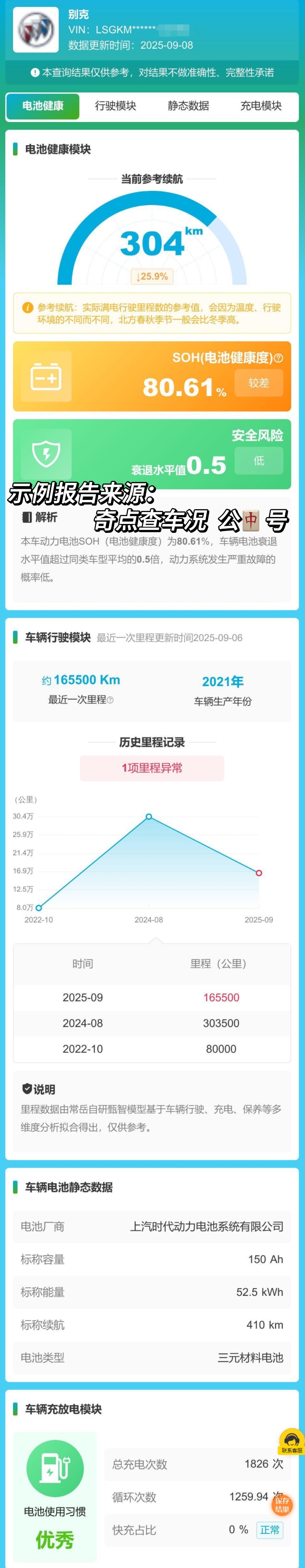 ②按照提示输入相关信息,平台会迅速整合多方数据,生成详细的报告包括:形式模块、静态数据、放电次数等等。(示例报告如下)