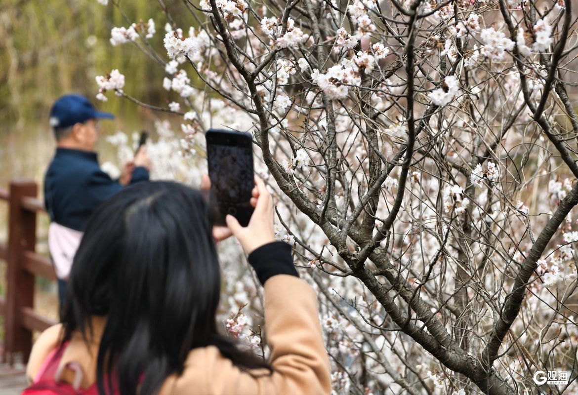 随着气温回升,青岛崂山区王哥庄街道庙石村的樱桃花迎来最佳观赏期。25日记者在现场看到,漫山遍野的粉白花海沿木栈道铺展,与远处青山相映成趣,吸引众多市民游客前来踏春打卡。