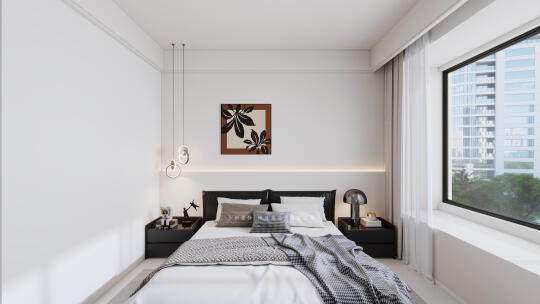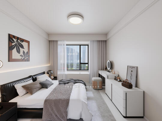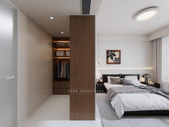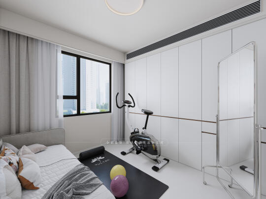 改造四:根据屋主生活习惯和爱好,三个房间布局为主卧屋主两人起居室,门口次卧儿童房(前期父母或朋友偶尔居住)、次卧的阳台为洗衣晾晒区,西向小次卧多功能室(健身+影视室),客厅阳台为休闲景观阳台。