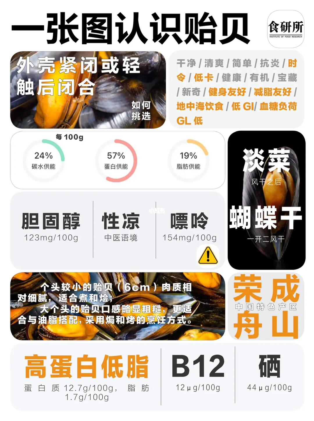 [中浅肤色R]贻贝在繁殖期(春夏)前会积累糖原和脂肪,肉质肥美。研究表明,贻贝的糖原含量在冬季达到峰值(约5-8%),产卵后(夏季)会减少50%以上,导致口感变柴。我国黄渤海海域的贻贝在12月至次年3月最肥美