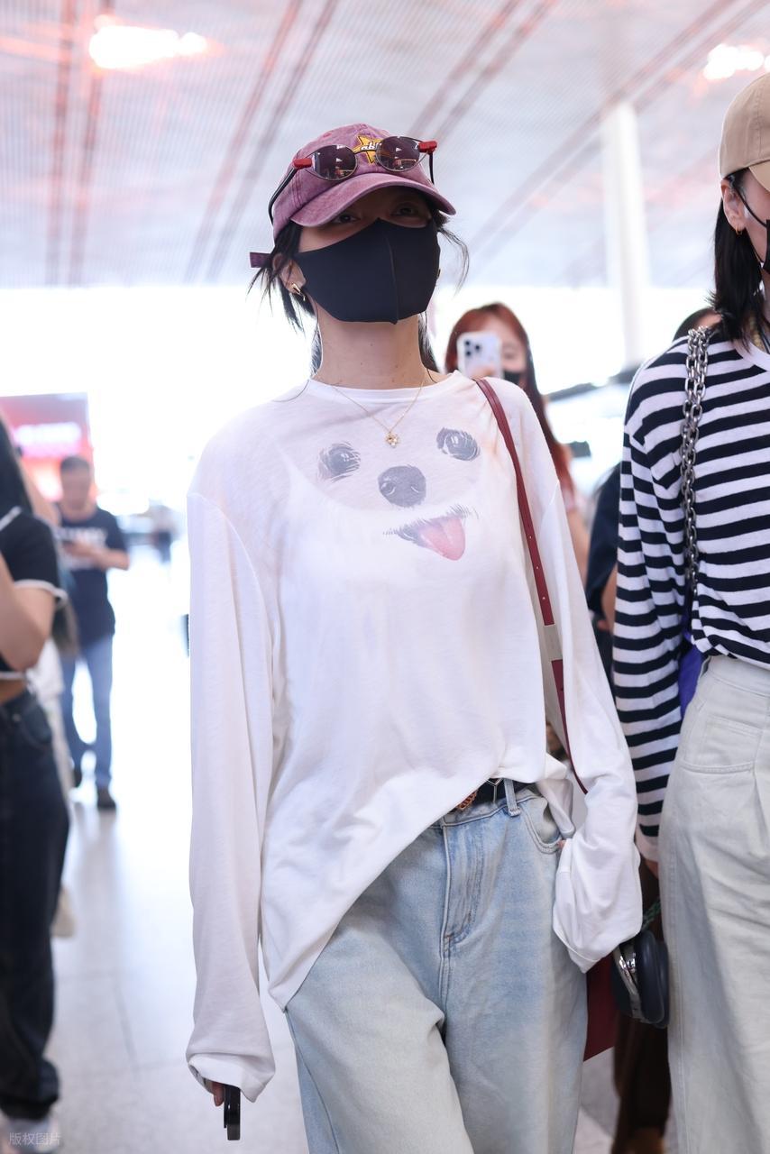 今天辛芷蕾现身北京机场,她这次搭配的很有清新时尚感,气质也不错。 辛芷蕾里面穿白色吊带背心,外面套着白色长袖衫,两件衣服叠穿的效果很不错。 她下身搭配做旧风格的牛仔裤,头戴紫色棒球帽,真的是太潮了。 辛芷雷的身段极为苗条,这回穿的很宽松,尽显洒脱之美。 她特意把上衣掖进裤子中,凸显出了满满的随性感,确实是格外的靓丽。