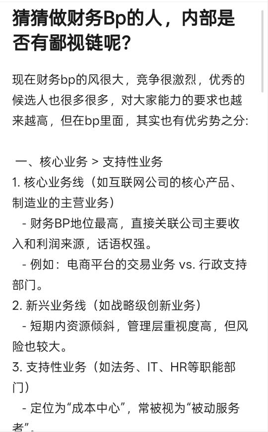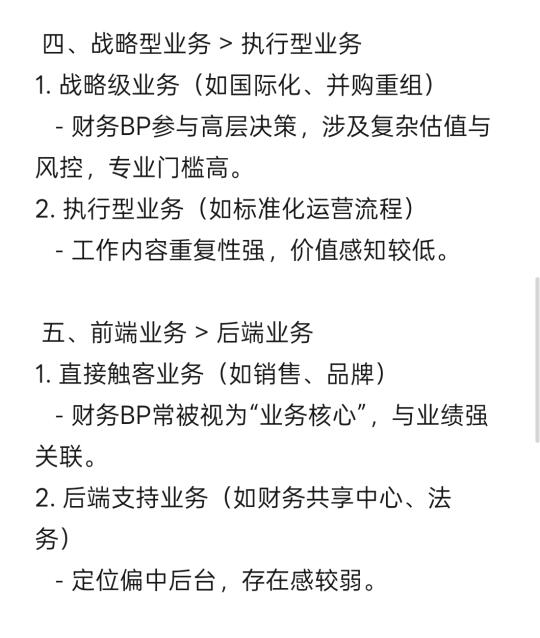 - 财务BP更偏向日常运营,创新空间有限,易被边缘化。