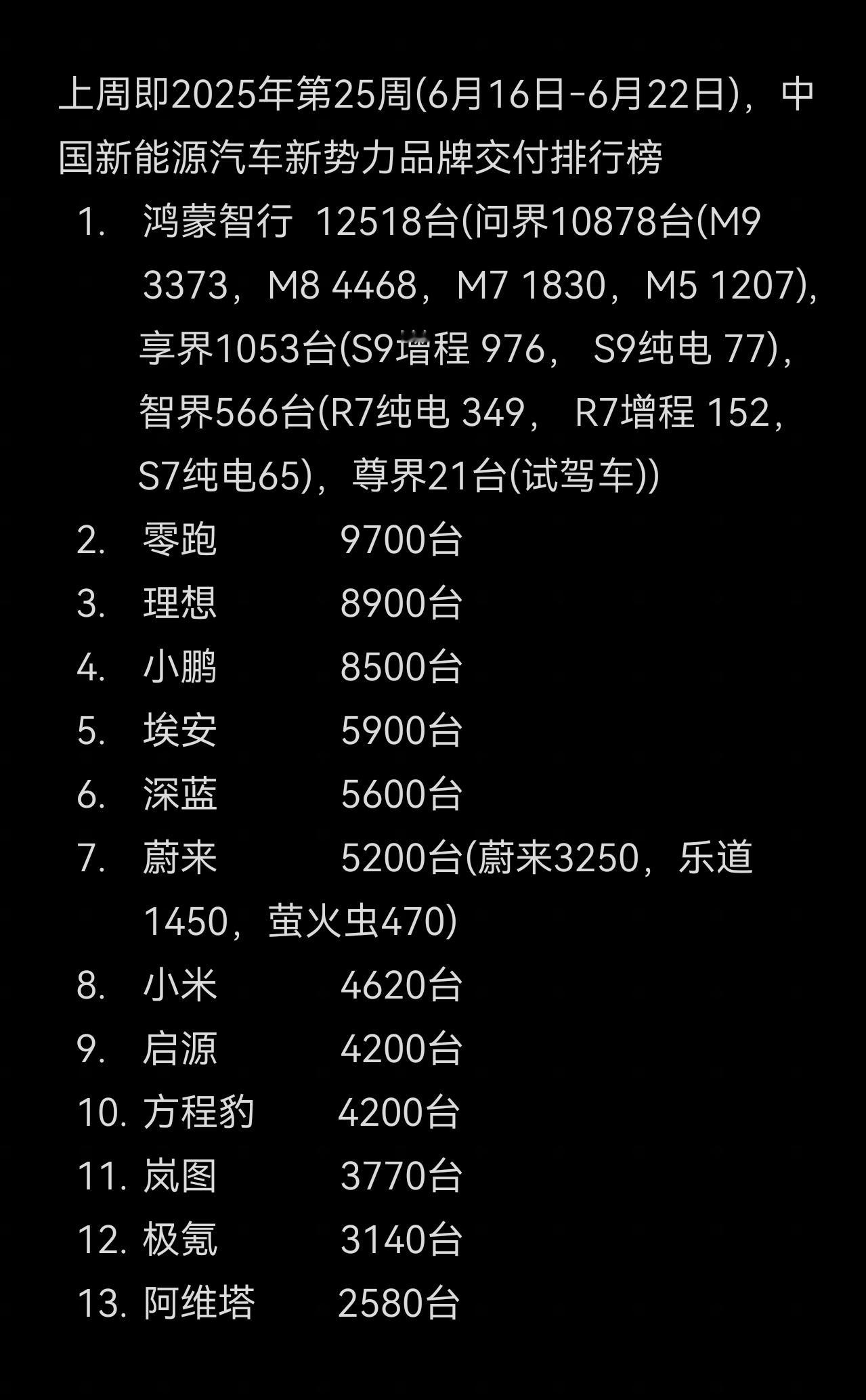群里看到蔚乐萤上周销量5200台,其中蔚来3250,乐道1450,萤火虫470。