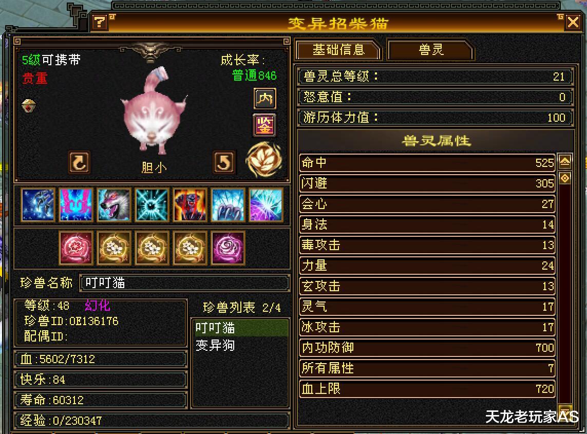 今天粉丝投稿了一只双十4003的胆小招柴猫,虽然它成长率很“普通”,但是号主绝对是精心养护了: