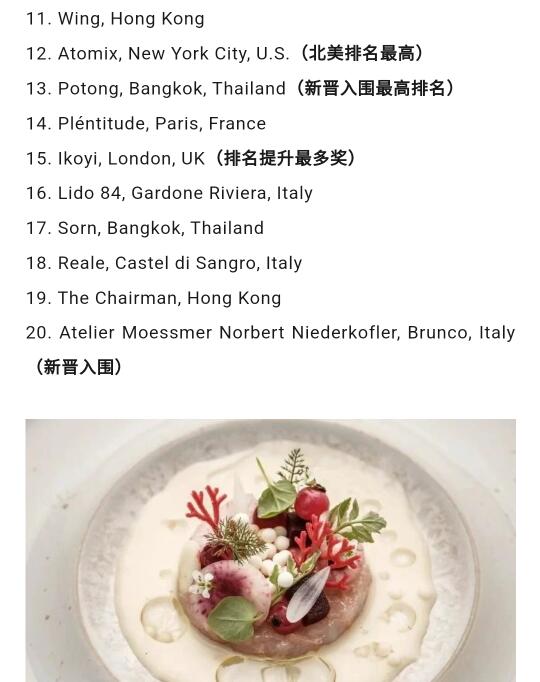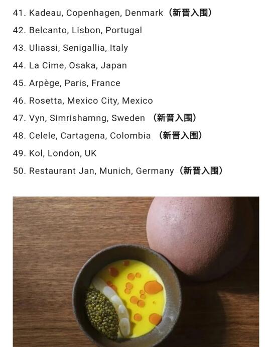 这也是继“米其林”餐厅评选外,一年一度非常有关 注 度和参考性的全球美食大榜!🔥🔥