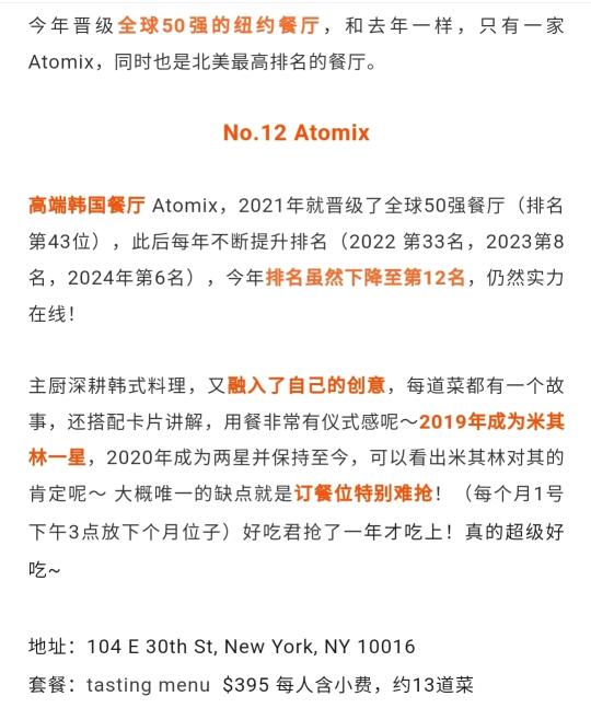 今年晋级全球50强的纽约餐厅,遗憾只有一家 Atomix,ta也是北美zui高排名的餐厅,去年排名第6