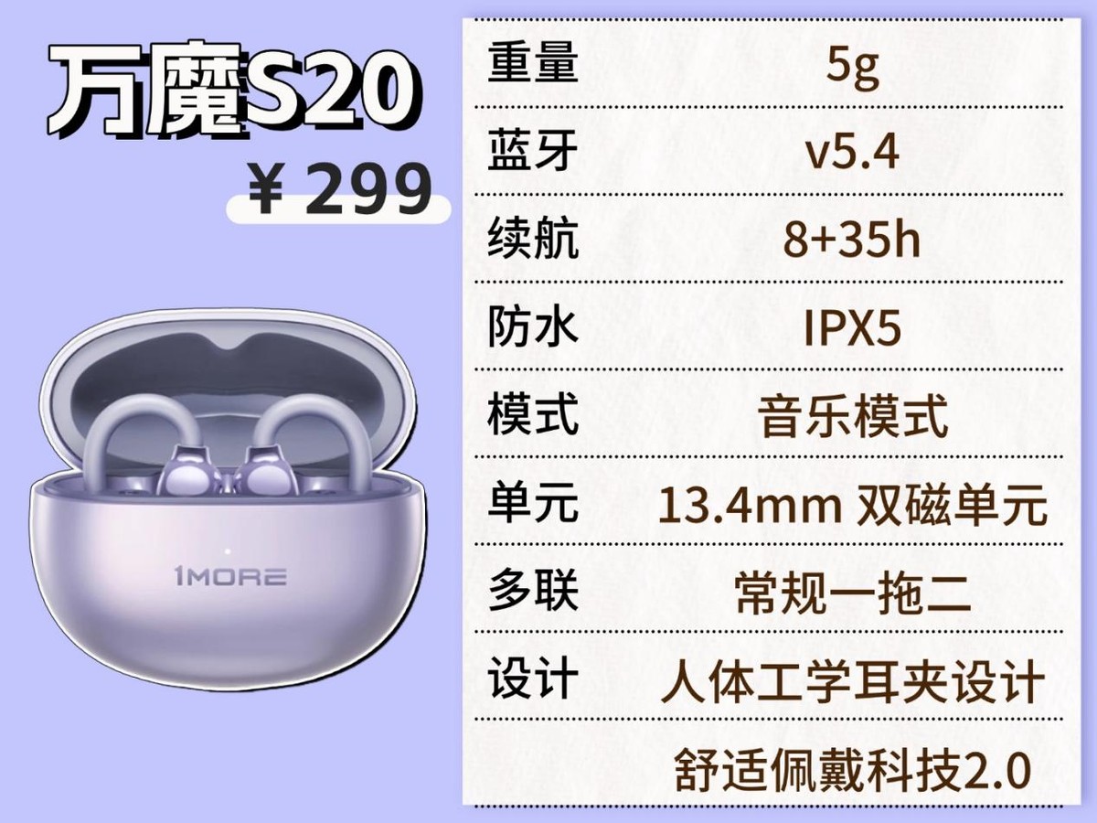 耳机亮点:双麦ENC通话降噪+支持一拖二+可拆卸耳翼