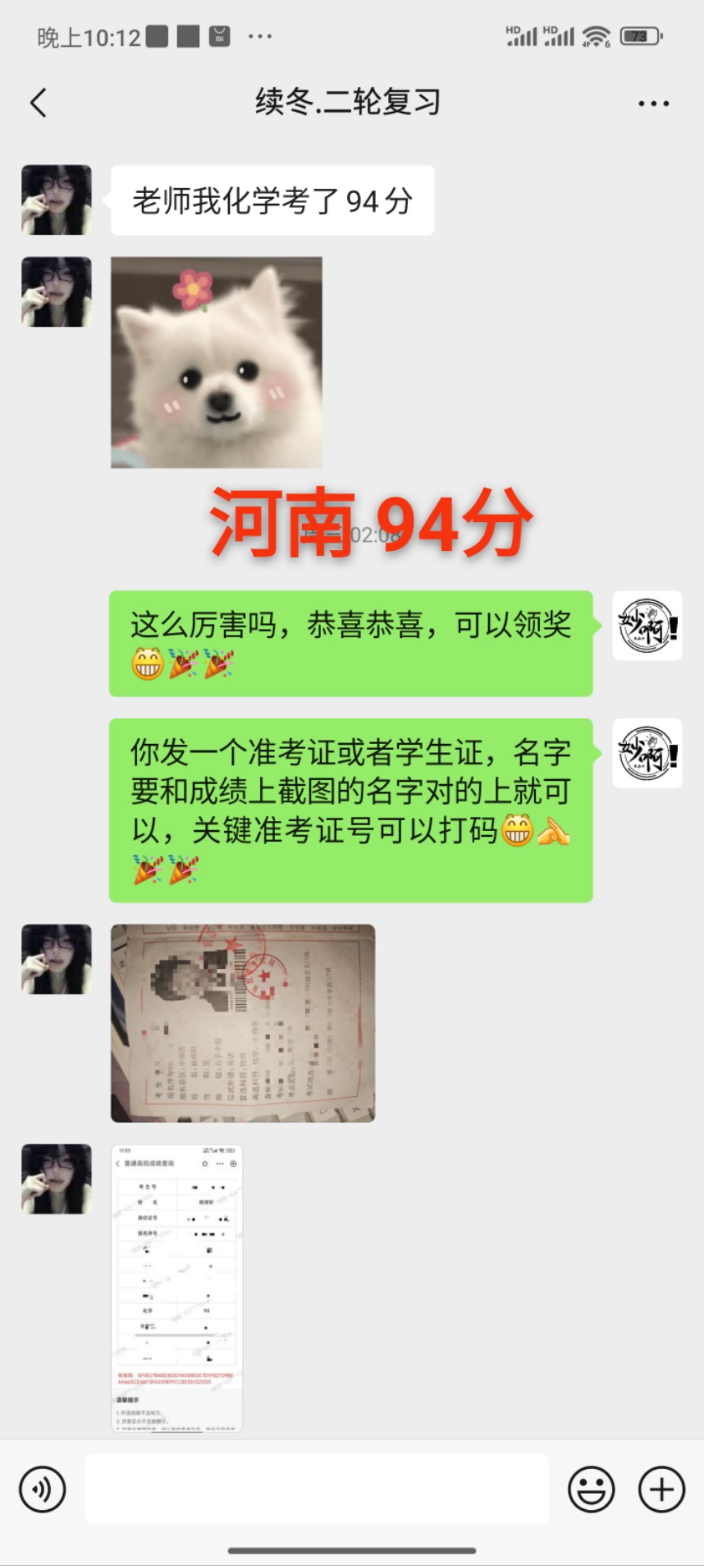 浙江97分,河南94分,陕西91分,辽宁90分,黑龙江90分。来自五个省份同学送来的喜报!查看聊天记录大家努力的过程都肉眼可见,感谢同学们的信任,我们也不负所望,交付了同学和家长都满意的答卷🥰🥰高考喜报高中化学妙招