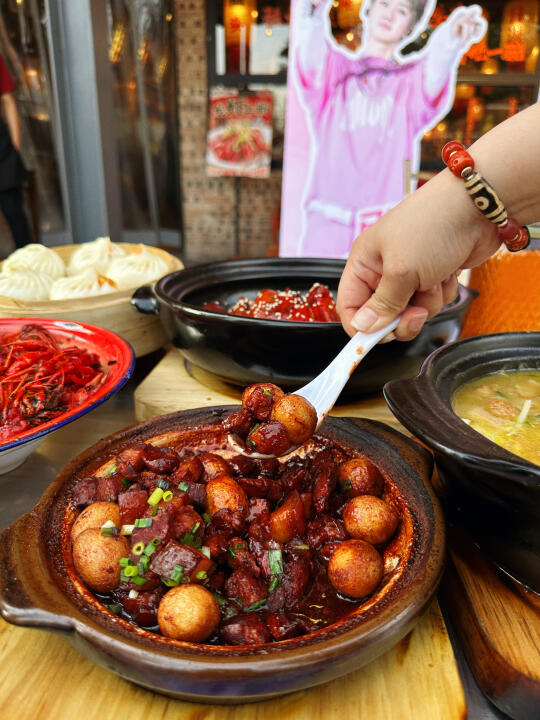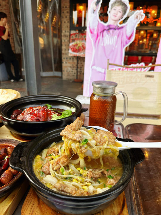 来太原看演唱会别错过学府街上的宝藏小店,吃到扶墙出~各种砂锅都是现做的,一整个烟火气满满‼️ ✔️砂锅鸡B点!巨软烂,筷子一夹就脱骨!颜色巨巨巨诱人,那个汤汁拌米饭!好吃哭~ ✔️夏天的麻小🦞谁能拒绝!坐室外也不热,微风习习吃小龙虾的快乐!!干干净净的好吃,个人也大,好吃到嗦手指! ✔️砂锅红烧肉我的爱!!为了它多吃两碗米饭!油亮油亮的红烧肉➕虎皮鹌鹑蛋!不腻不柴,好吃好吃! 💕看完汪苏泷演唱会的小泷包来吃大包子吧!薄皮大馅的老面包子!碳水的快乐! 💥 人均不到50,好吃没毛病~