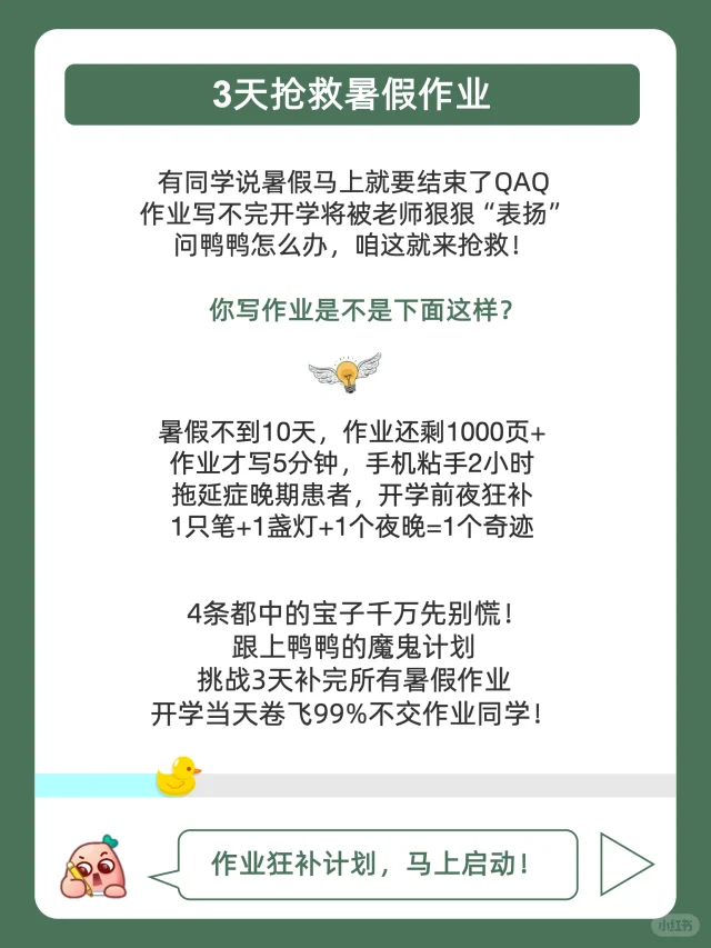 [赞R]暑假作业没写完,鸭鸭带你3天卷完❗️ · [哇R]拿下这篇暑假作业抢救秘籍,作业炫到飞起!🚀 . [偷笑R]赶紧学起来,开学不写完作业,可是会被老师狠狠奖励的哦❗ . 🐣我是鸭鸭学长,持续分享更多学霸学习法,陪宝子们学习开窍,考试开挂!💯