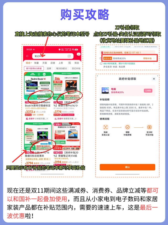 直接上淘宝搜索你心怡的笔记本型号,只要是显示ZF补贴均可享受(要填享受补贴地区的地址喔)