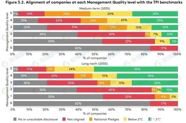 企业中长期脱碳轨迹对比(TPI Alignment in 2035 and 2050)