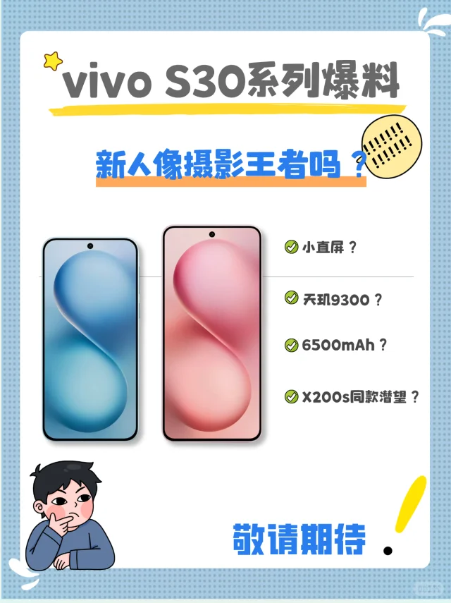 延续了S系列家族风格,预计是天玑9300+处理器[暗中观察R][暗中观察R],镜头是5000万像素IMX882潜望长焦以及6.31英寸多彩小直屏🤨🤨,maybe还会配备6500mAh大电池,预算2k左右还想要超顶人像拍摄性能的学生党可以直接入!