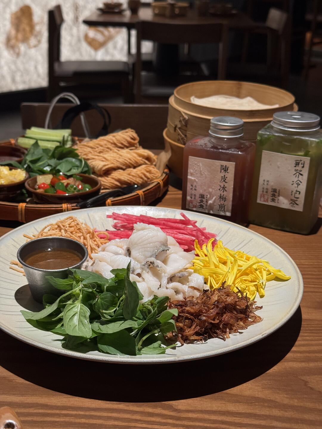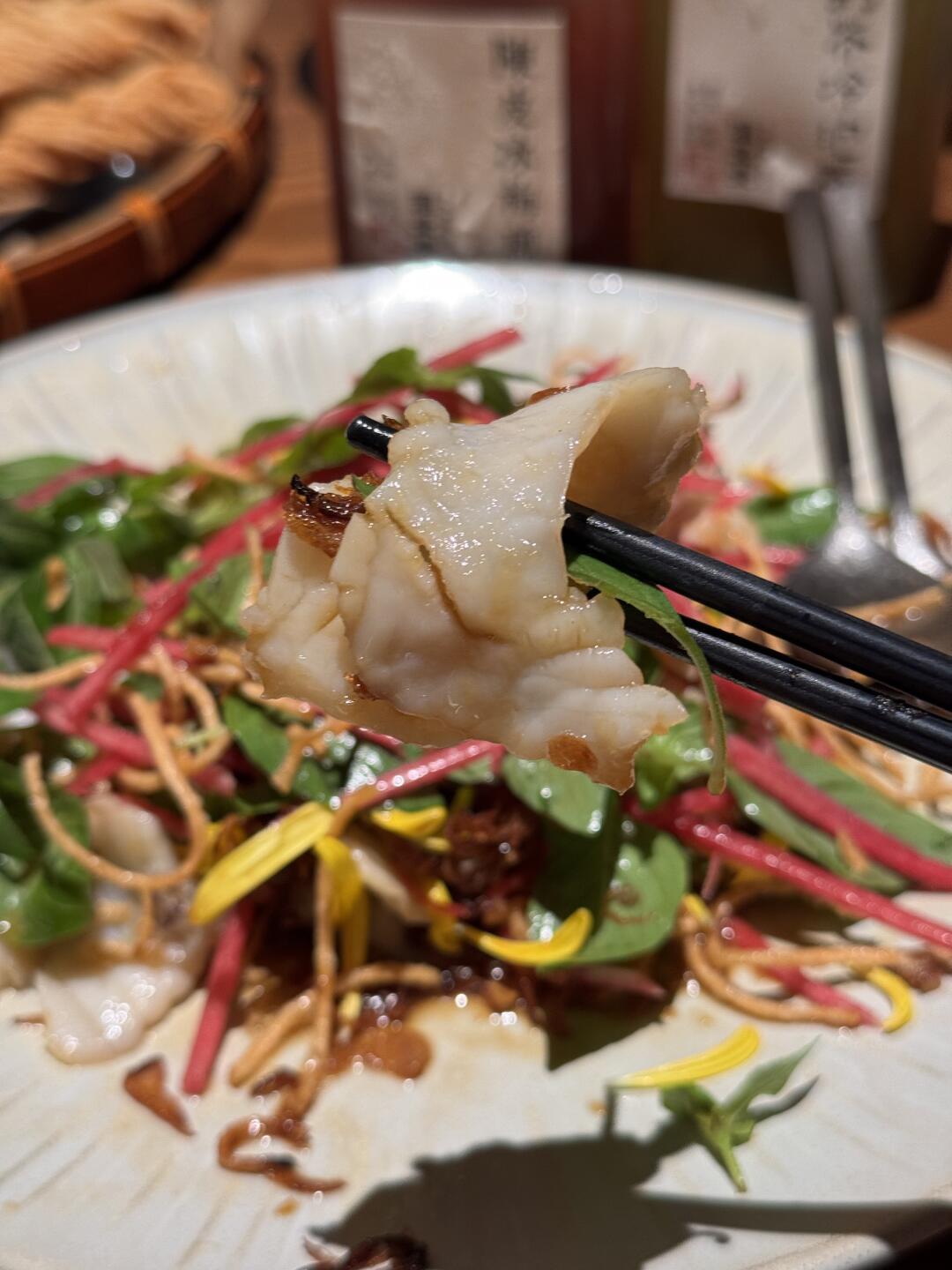 谁说广东鱼只能清蒸?河南老板直接给你整盘「刺身级凉拌鲷鱼」!鱼肉像刚做完瑜伽般Q弹,秘制酱汁把腥味按在地上摩擦,吃完只想喊:"老板再来盘鱼皮!"