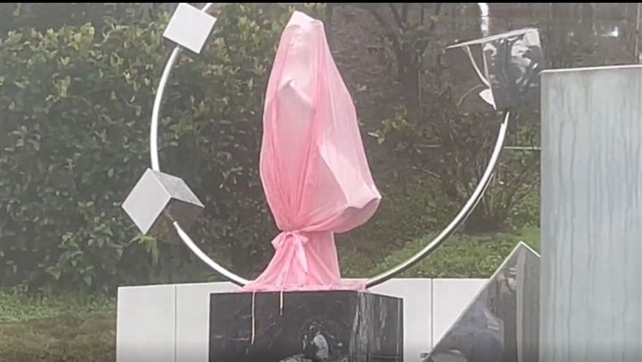台媒曝光了最新现场画面,可以看出,之前用黑布遮挡的雕像,今天也用粉布包裹了起来。虽然雕像还未揭幕,但薄纱之下也能隐约看到,大S雕塑双眼紧闭,双手捧在胸前,虔诚的样子一如她生前待人接物的美好一样,只能说具俊晔真的是用心了!
