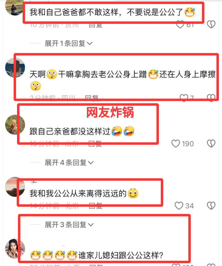 怎奈女子紧贴着公公,让公公无所适从,这一幕引起网友的热议,有网友表示“女大避父不知道吗,我和我亲爸都没有这样过,成年人要有距离感,就算是亲人,也要有分寸!”