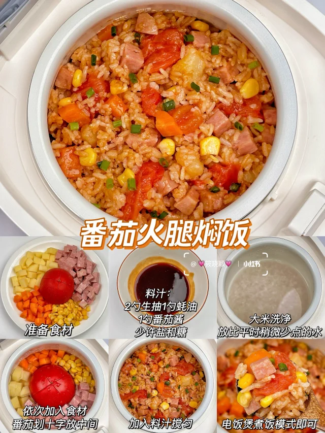 天气热不想开火,巨好吃的懒人焖饭安排起来! 肉菜饭一锅出,营养满满,口感丰富,好吃到停不下来~ 做法简单,厨房小白也能轻松搞定!上班族带饭也是妥妥滴! - 🍅番茄火腿焖饭 🥔腊肠土豆焖饭 🥕咖喱鸡肉焖饭 🍗香菇鸡腿焖饭 🌽时蔬排骨焖饭 🧅洋葱肥牛焖饭 - 🌈具体做法都在图片里啦~欢迎你们交作业😘 懒人食谱超级下饭的家常菜大人小孩都爱吃不重样宝宝食谱米饭的神仙吃法电饭煲焖饭懒人焖饭一人食吃什么