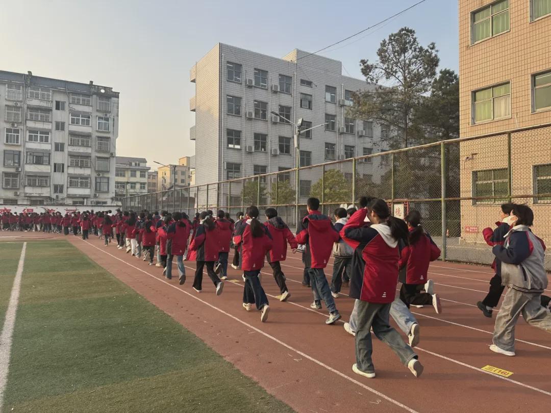 会前,高一学子迎着晨光驰骋操场,每一步都迸发活力,点燃集会热情,尽显蓬勃向上的青春姿态。