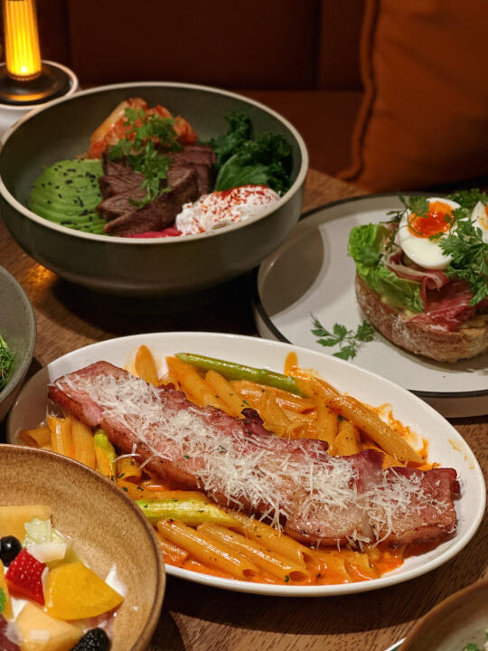 又又又来吃喜欢的餐厅了 好看又低卡路里的漂亮饭 mark一下新品我喜欢的几个 - 🥪牛油果火腿开放式三明治 饱腹感强大,好大一个!口感层次丰富,牛油果给的量足!溏心蛋➕火腿好好吃~ 🐮辣味牛脸肉牛肝菌饭 主食控超爱这个!牛脸肉软嫩入味,把溏心蛋戳破搭配拌饭真的敲好吃!! 🍝自制厚培根辣奶油意面 意面Q弹,培根又大块又厚!奶酱浓郁微辣的哟 🧀️巴斯克孔泰芝士蛋糕 浓郁咸香芝士,巴斯克浓厚!超爱的了 - 甜品选了柠檬芒果冰淇淋冰沙、羽衣甘蓝牛油果酸奶、芒果椰丝酸奶闭眼点!都好吃[哇R] -