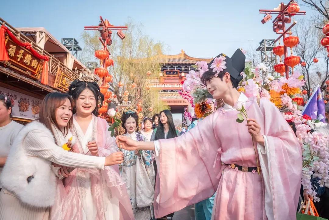 龙亭景区推出“宋韵沉浸式赏花+传统民俗互动”主题活动,你可以在浪漫花海中感受宋韵风雅。
