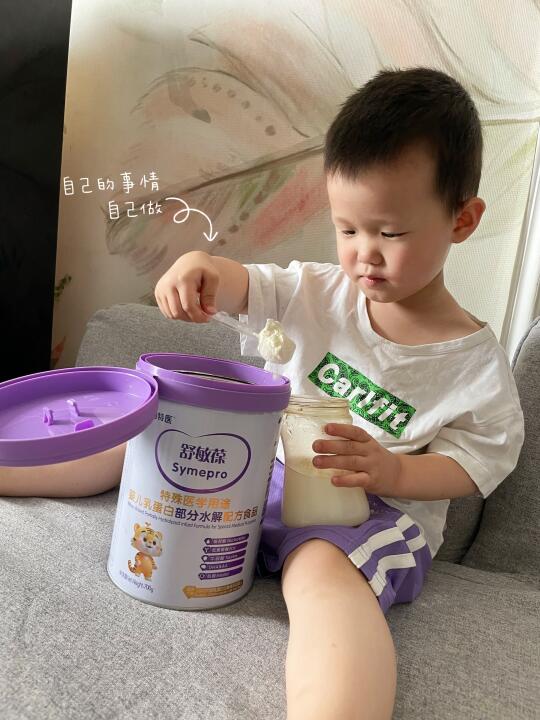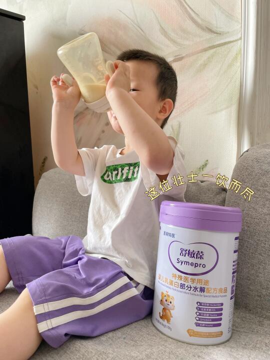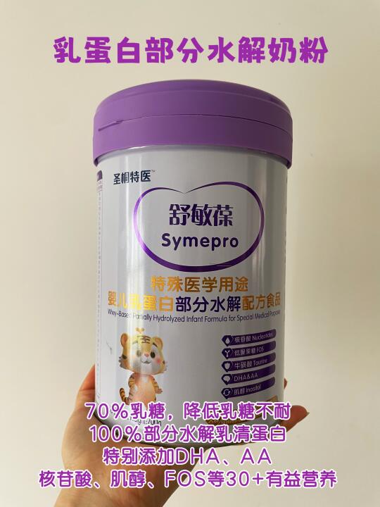 选择部分水解配方奶粉,舒敏葆部分水解配方奶粉在保留营养成分的情况下,将易致敏的大分子牛奶蛋白“大切小”,降低牛奶蛋白致敏风险。