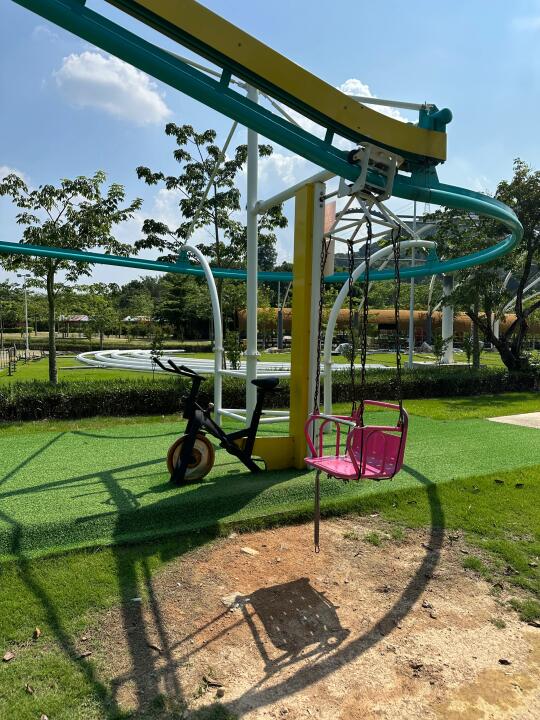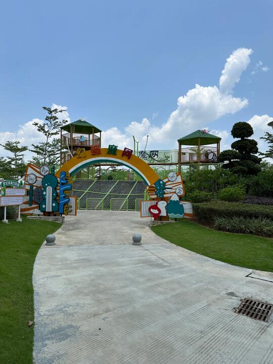 🌟新、干净和人少,是我对这个乐园的初印象 🗺️整个园区有大面积的无动力设施分布不同区域 🎢也有丛林过山车、转转飞椅、卡丁车、海盗船、游船等机动游戏 💦还有可以玩水的龙骨乐园 💡乐园占地约18万㎡ 游玩总长将近一公里长 🏃🏻➡️相比大乐园不费腿,刚好合适小孩子 🍽️乐园入口里也有室内的驿站可以用餐(图18) ☀️乐园6点就闭园‼️夏天户外气温太高🔥,为了避开日晒,下午4点后才合适玩耍⏰,游玩时间可能不够尽兴,整体来说,更合适夏季阴天或者秋冬天气游玩。 📍惠州博罗
