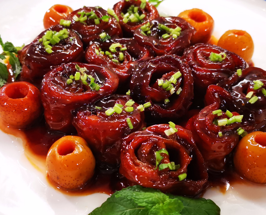 这道菜背后藏着段有趣往事:相传某位文人吃后赞不绝口,问厨师做法。厨师答:"需将肥肠翻来覆去烹制九次。"文人灵机一动:"不如叫'九转大肠'?"既暗合道家"九转金丹"的吉祥寓意,又突出工艺复杂,从此名扬天下。