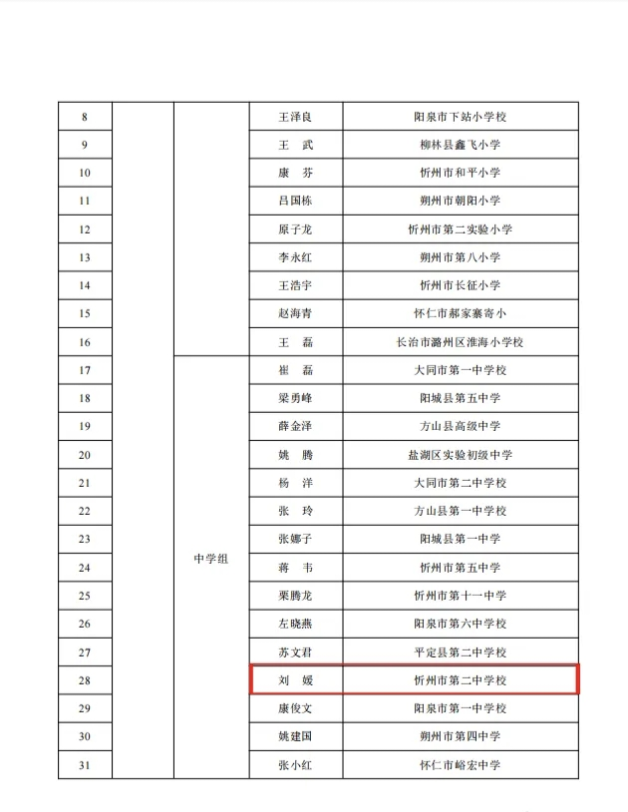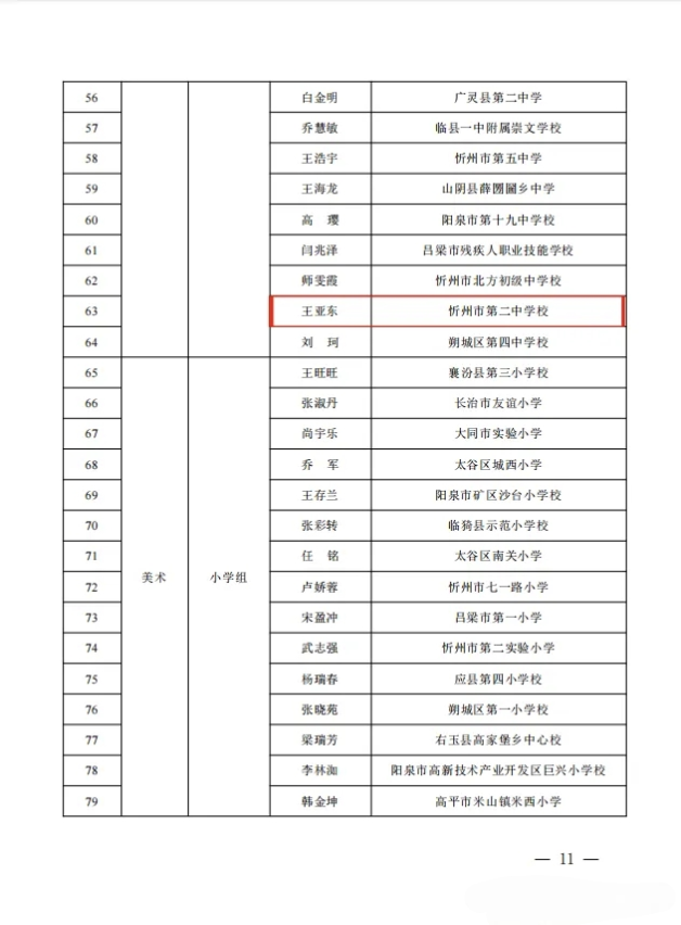 2025年山西省中小学体育、音乐、美术教师基本功技能比赛圆满闭幕,共有来自11个地市198名教师参赛,在个人全能比赛中,忻州二中音乐教师王亚东、体育教师刘媛获得三等奖,为学校赢得了荣誉。