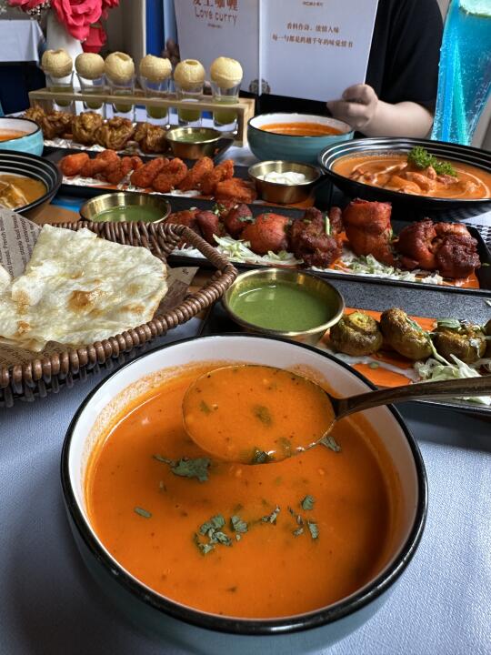 太原居然藏着这么一家印度餐厅!干干净净的一家店!第一次感受印度的分餐,玛莎拉也很好吃的好嘛!咖喱种类超多的⭕️ 真真的正宗印巴融合餐厅!厨师和老板都是印度人!食材干净新鲜~真不错呐⭕️